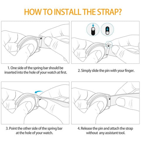 The band is equipped with quick-release pin, which makes installation process tool-free, and additionally, a tool is included to take off your old band.